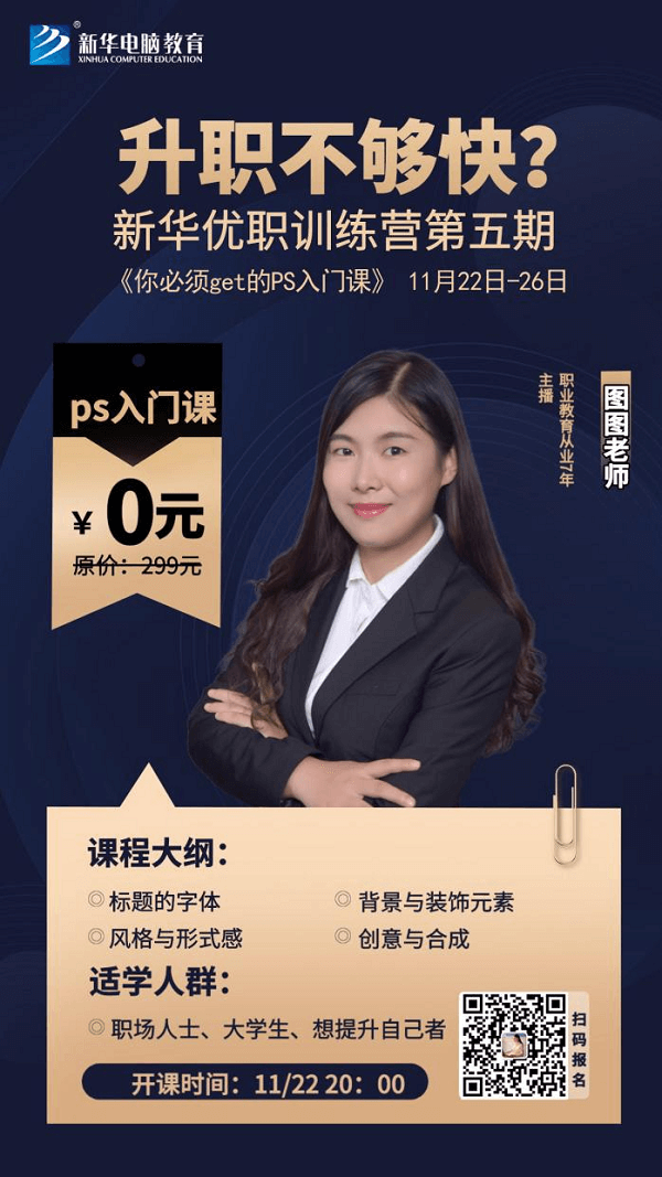別慌!新華優(yōu)職訓(xùn)練營(yíng)作為帶領(lǐng)PS小白快速上手的專業(yè)入門級(jí)必修課,經(jīng)過(guò)前四期的積淀,已然成熟!11月22日起,每晚8點(diǎn),新華優(yōu)職訓(xùn)練營(yíng)第五期《你必須get的PS入門課》正式上線!