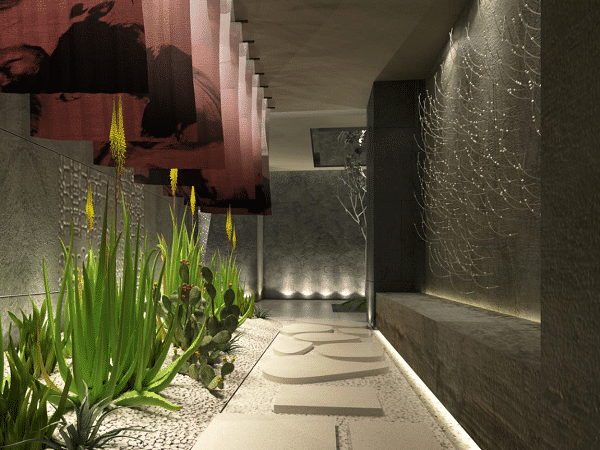 環(huán)境藝術設計通過一定的組織、圍合手段、對空間界面(室內外墻柱面、地面、頂棚、門窗等)進行藝術處理(形態(tài)、色彩、質地等),運用自然光、人工照明、家具、飾物的布置、造型等設計語言,以及植物花卉、水體、小品、雕塑等的配置,使建筑物的室內外空間環(huán)境體現(xiàn)出特定的氛圍和一定的風格,來滿足人們的功能使用及視覺審美上的需要。