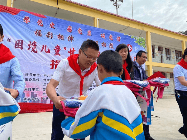 6月23日,甘肅省福彩發行管理中心,蘭州網絡廣播電視臺《圓夢》欄目組與蘭州新華互聯網中等職業學校一行人帶著對“困境兒童”的殷切關愛,為臨洮縣285名困境兒童送上“愛心包”,并舉行了“學黨史,感黨恩,頌黨情”——關愛“困境兒童”甘肅福彩《圓夢》行動捐贈儀式。