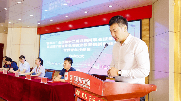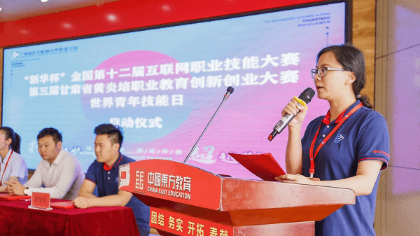 儀式在莊嚴的國歌聲中拉開帷幕,李東霞老師首先就職業技能文件進行解讀。李老師表示,本次活動主題,主要包括邀約優秀青年技能人才分享成功經驗,高技能人才培養校企合作簽約以及各職業技能大賽活動啟動。本次職業技能大賽包括:新華互聯網科技 2021 年“新華杯”全國第十二屆互聯網職業技能大賽、第三屆甘肅省黃炎培職業教育創新創業大賽。新華互聯網科技以多元化、多維度的教育模式,積極響應國家“互聯網+”的政策號召,加快推進職業教育的發展,培養高素質的專業技能人才。此次世界青年技能日活動,希望同學們勤于思考,勇于創新,積極參與進來,發揮一技之長,精通一門技藝,提高實踐能力、就業能力、創新和創意能力。