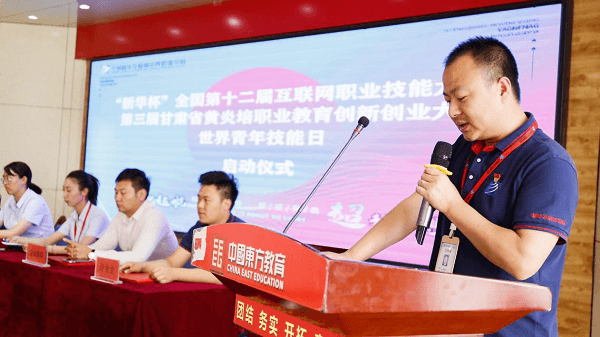 隨后,王東東老師上臺總結發言,他表示本次競賽中,同學們將與來自各校各專業的選手同臺競技,通過整個大賽,我們可以審視自身差距,促使我們更加努力學習知識,掌握技能,這也是我們養成良好職業規范,鍛煉專業技能一個難得的機會,更是我們人生中精彩的篇章,希望同學們好好努力,賽出水平,賽出蘭州新華互聯網的風采,最后預祝我校學生能在大賽中取得優異成績。