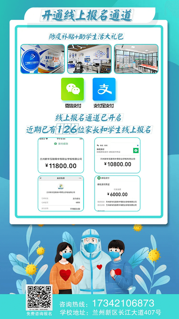 停課不停學(xué),蘭州新華伴你前行,足不出戶輕松選擇好學(xué)校、選擇好專業(yè)、學(xué)習(xí)好技能!做好防護、保護自己,健康逐夢未來!