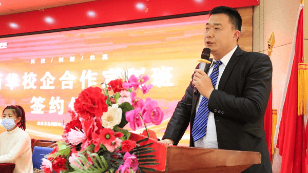 活動伊始,潘曉軍主任發表致辭,首先就長期以來關心和支持我校辦學發展的社會各界表達了衷心感謝。他指出,職業院校是培養應用型人才與技術性人才的主要陣地,學校高度重視產教融合和實習就業工作,通過學歷提升、訂單培養的模式,努力實現人才培養和社會需求的有效對接,為我校畢業學生就業保駕護航。本次簽約,為我校校企合作單位隊伍再添新丁,讓定制班學生實現“零距離”就業。發言最后期望雙方以此次簽約為契機,努力實現學校參與、企業參與、社會參與和學生參與的良好氛圍,為本土區域經濟及教育做出新的貢獻,為大力發展我國職業教育作出新的探索!