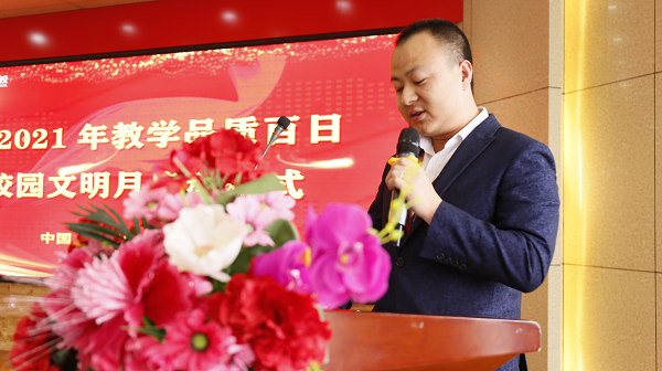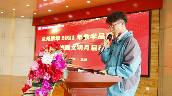 隨后,學生處主任做動員報告,他激勵全體師生以校園文明禮貌月活動為契機,進一步提升文明禮貌素養,促進學校內涵發展。并提出:“全體師生要以實際行動擦亮蘭州新華文明禮貌品牌,發揮文明禮貌輻射作用,以文明禮貌扮靚蘭州新華。”